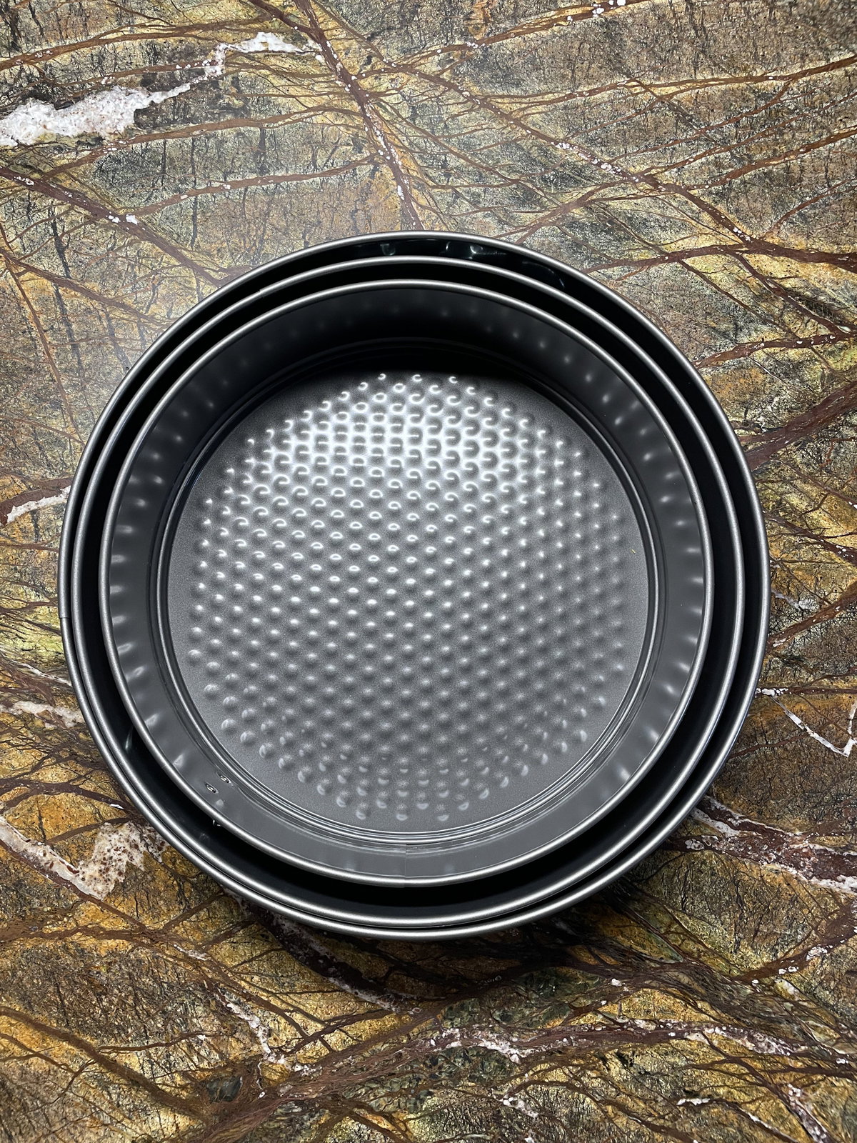 El set de 3 torteras desmontables antiadherentes incluye 3 tamaños diferentes, ideal para preparar tortas de distintos diámetros o realizar bizcochuelos en capas.